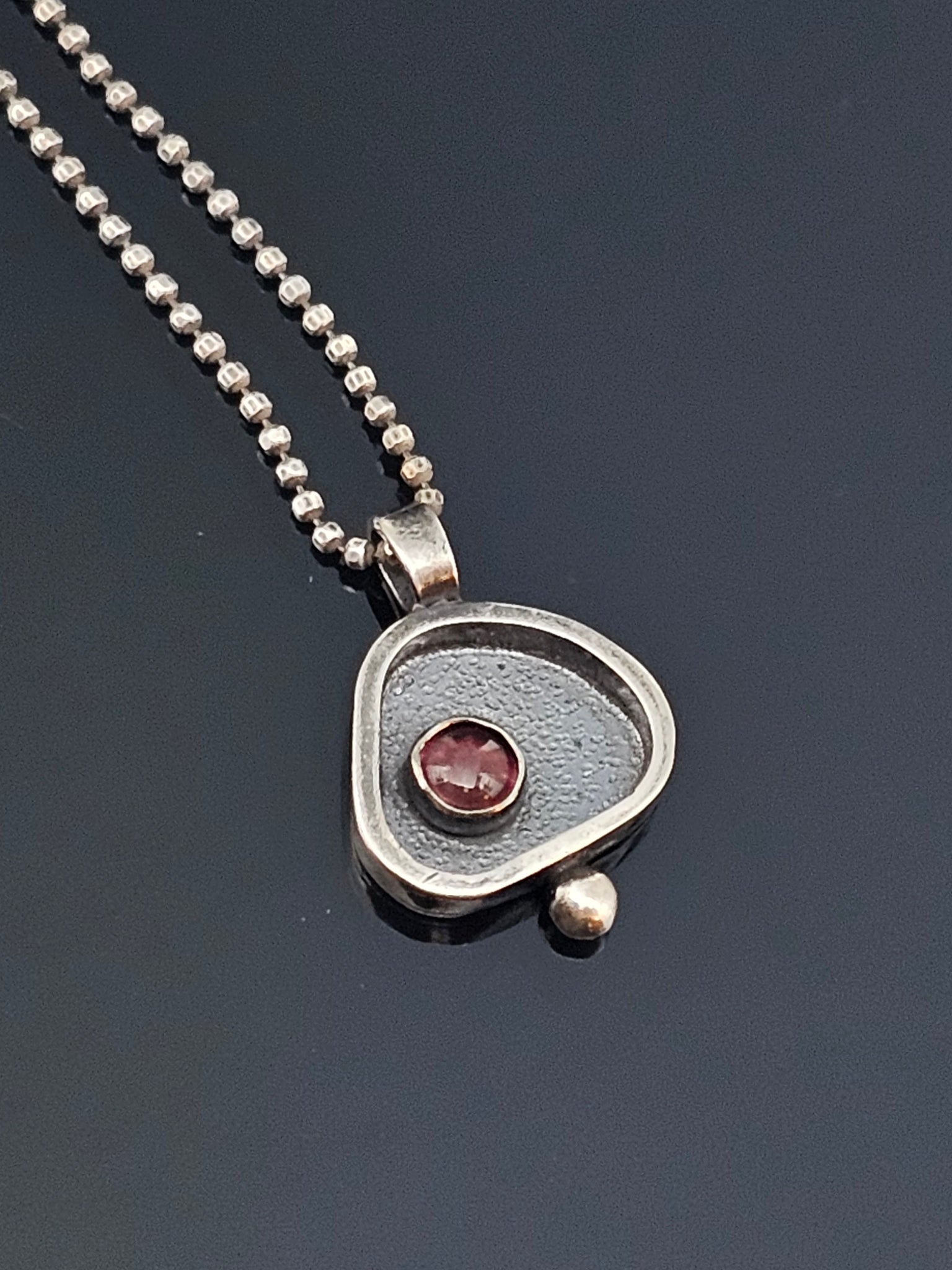 Natural tourmaline cab set in sterling silver frame box style pendant. Includes 16"Sterling silver chain. - Antiqued finish. Original design by Alejandra Whittier/Stone Disegno by Ale©