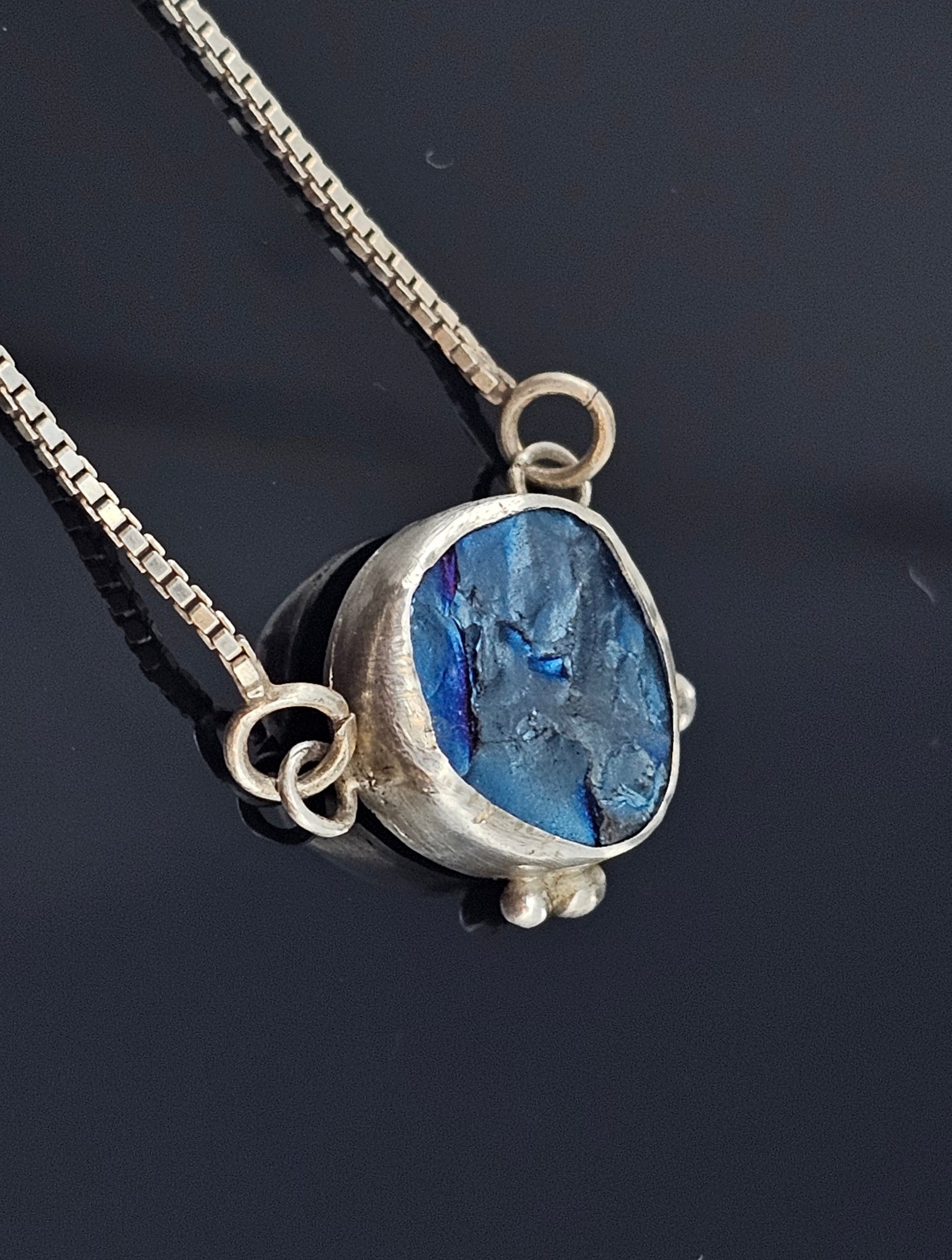 Titanium cab set in sterling silver pendant. Includes 16" Sterling silver chain. Bright finish. Original design by Alejandra Whittier/Stone Disegno by Ale©
